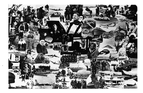 Below: This collage mural, also 4' x 6', mounted on 1/4' masonite, was created as a decoration for the USAF recruiting office in Flagstaff, Arizona. The collage pictures are photo print posters that were in their office inventory. The posters were trimmed, fitted and wet-mounted using acrylic matte medium varnish materials.